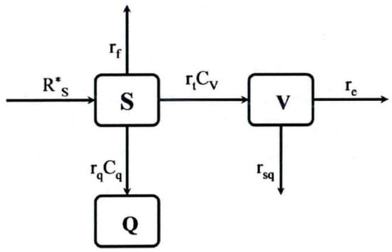 Schematic diagram of energy transfer dynamics between solvent and solute in the liquid scintillator (RS: generation rate of the excitation solvent S; Cv: rate of the excited solvent transfer to the scintillator; and rf: generation rate of the self–quenching process).