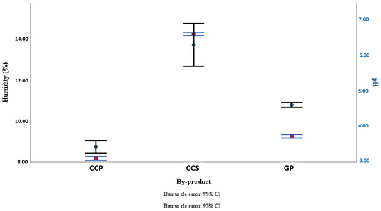 The pH levels of the byproducts were measured with a portable digital potentiometer (HANNA HI 98130) via the 981.12 method of the Association of Official Analytical Chemist [31]. Approximately 1.0 g of each sample was dissolved in 10.0 mL of distilled water, after which the value was recorded.