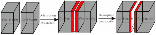 The coal matrix releases heat during CO2 adsorption, leading to thermal expansion, and absorbs heat and contracts during CO2 desorption, resulting in a change in fracture width (Figure 6).