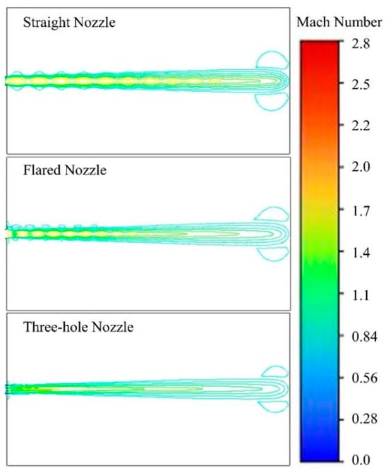 18] investigated the effect of a Laval nozzle structure on the flow characteristics of a supersonic gas–solid two-phase flow, and they concluded that various linear types of Laval nozzles exhibit excellent axial momentum for particle cores. Wu et al. [