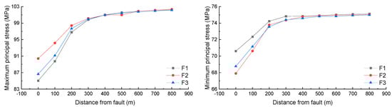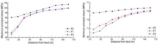 - The outcomes of multi-fault stress field simulations illustrate that faults typically cause a reduction in the horizontal principal stress at the fault locations. However, the extent of geostress reduction and the range of its influence vary among different faults, with the most extensive influence spanning up to 310 m.