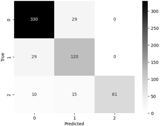 Figure 26 illustrates the confusion matrix of the test dataset of the model. The obtained results reveal that the neural network achieved a prediction accuracy of 91.92% for label 0 (granite), 80.53% for label 1 (sandstone), and 76.42% for label 3 (limestone). As is seen, the prediction accuracy levels for all three rock types in the laboratory drilling tests are relatively lower than those of the dynamic numerical simulation data. In addition, the accuracy of the rock classification is lower for the rocks with smaller dataset sizes. As a result, it can be concluded that constructing neural network models with a limited amount of drilling data does not yield satisfactory predictive performance.