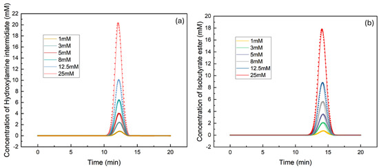 The following supporting information can be downloaded at: https://www.mdpi.com/article/10.3390/pr12061273/s1, Figure S1: Ion intensity of hydroxylamine intermediate at various concentrations over time. Figure S2: Ion intensity of isobutyrate ester at various concentrations over time.