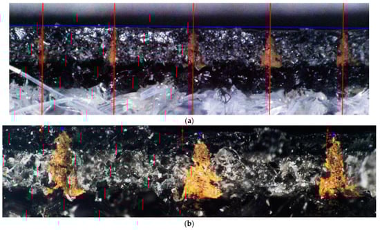 Furthermore, Yuki et al. [15] explored laser processing using nitrogen, argon and oxygen as auxiliary gases under consistent average power and scanning speed conditions. Nitrogen, with its higher specific heat capacity compared to argon, proved to absorb more heat, thus limiting the expansion of the carbon fiber end face. Additionally, oxygen’s inclusion facilitated deeper material incisions, addressing challenges associated with material removal in deeper layers due to lower laser energy.