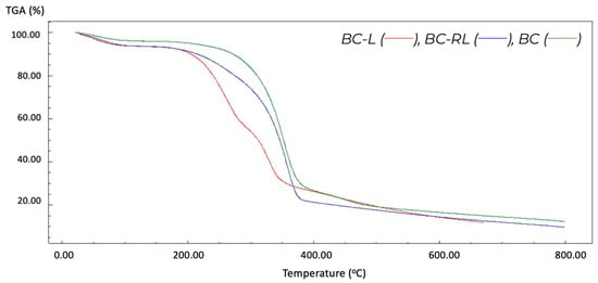 3.6. Thermogravimetric Analysis (TGA)