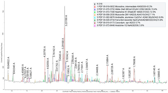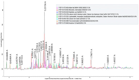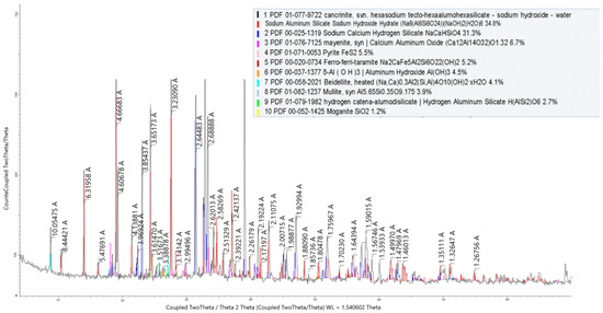 The phase composition of the nepheline after activation is shown in Figure 6.