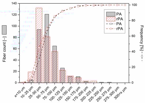 Fiber length distribution in composite before (PA) and after (rPA) recycling.