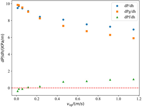 Next, we focus solely on the analysis of the frictional pressure gradient. Table 2 shows the change in the friction pressure gradient with vsg corresponding to the initial liquid column heights of 0.5 m, 1 m, 1.5 m, and 2 m when the casing pressure is 0.3 MPa.