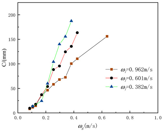 Changes in flow patterns in the tube with increasing liquid-phase converted velocity at constant gas-phase converted velocity. (a) ; (b) ; (c) .