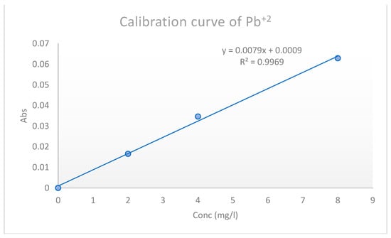 The study’s investigation into the adsorption of Pb(II) by biochar commenced with the calibration of different concentrations of Pb(II) against their corresponding absorbance levels. This relationship, as depicted in Figure 4, was found to be linear, affirming the reliability of the measurements and the method.