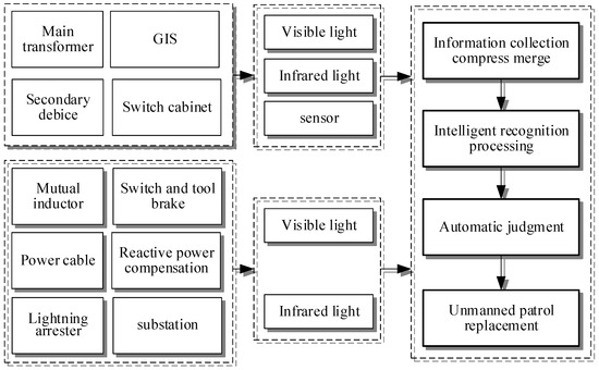 By leveraging high-definition video surveillance, infrared thermal imaging, intelligent inspection robots, and other techniques, we automate the inspection process within the station, enabling the real-time display of inspection images and progress. Utilizing artificial intelligence algorithms for advanced image recognition and analysis, the inspection results are presented in various formats, including visible light images and infrared thermal imaging, allowing for customized report generation that meets industry standards, as depicted in Figure 2 [63,64].