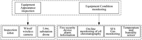 The intelligent inspection service encompasses two key areas: equipment appearance inspection and equipment status monitoring. For equipment appearance inspection, we utilize robots, wired/wireless cameras, drones, handheld terminals, and other innovative methods. On the other hand, equipment status monitoring is achieved through advanced techniques such as infrared cameras, temperature/humidity sensors, and equipment meter collection. In terms of on-site safety control, we adhere to the strict requirements of safety work procedures. This involves conducting standardized safety inspections of construction and maintenance operation sites, both on-site and remotely, to ensure the safety of personnel, the electrical system, and equipment. Research into intelligent inspection necessitates the support of power sensors, as depicted in Figure 3 [65,66,67].