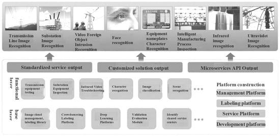 An artificial intelligence platform was constructed, as depicted in Figure 5, encompassing three distinct layers: the basic layer, the functional layer, and the application service layer. This platform is designed to achieve standardized service delivery, customized solution generation, and microservice API outputs [90].