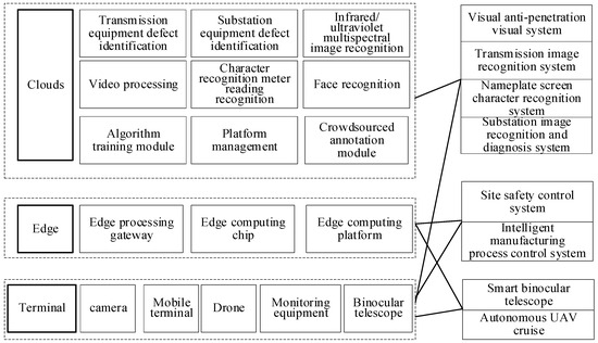 Leveraging the Internet of Things and artificial intelligence, a technology application ecosystem can be established for the rapid iteration of visual applications. This ecosystem encompasses the cloud, edge, and terminal layers, enabling adaptability to diverse application scenarios [92], as depicted in Figure 7.