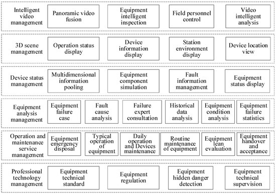 The backend software platform includes databases, database middleware, and data buses, while the backend software applications encompass system management, debugging tools, model configuration, data acquisition, data analysis, and advanced functionalities such as electronic mapping, video surveillance, voice intercom, pattern recognition, intelligent integration, automated reporting, historical queries, and curve analysis [79,80], as depicted in Figure 4.