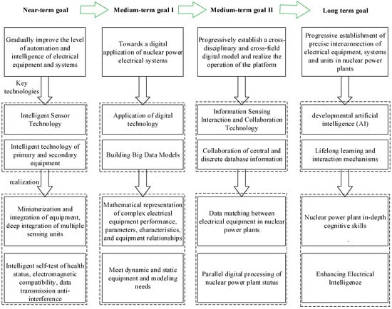 The structure of this paper is as follows: Section 2 provides a detailed discussion on the intelligence requirements and challenges faced by the electrical systems of nuclear power plants, including the current state of intelligence levels and existing issues. Section 3 introduces smart electrical equipment and its application in nuclear power plants, covering the architecture of smart devices and the intelligentization of medium- and low-voltage electrical equipment. Section 4 explores the intelligent operation and maintenance technologies and application trends of the electrical systems in nuclear power plants, involving the transition from automation to digitization, and then to intelligent development. Section 5 presents the development trends, basic principles, intelligent architecture, and development planning of the intelligentization of the electrical systems in nuclear power plants. Finally, in Section 6, we summarize the entire paper and provide an outlook for the future, emphasizing the potential of intelligent technology in enhancing the operational efficiency and safety of nuclear power plants.