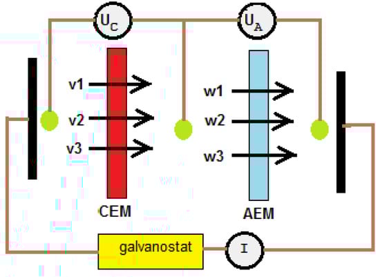 - Schaetzel, P.; Auclair, B. Mass transfer through a weak acid ion-exchange membrane. Electrochim. Acta 1993, 38, 329–340. [Google Scholar] [CrossRef]