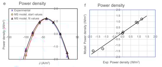 Power density was determined from membrane potentials and current density. The internal fluxes of ions and water were derived from the velocities and concentrations of the particles. These data were compared with the experimental values. This is discussed in the next section.