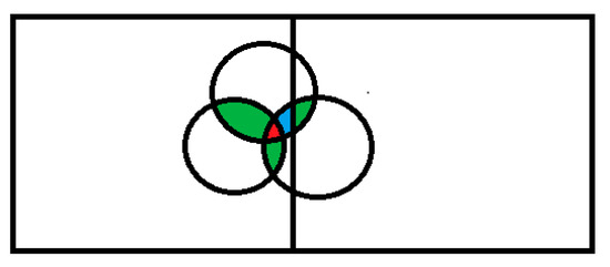 The addition of the assumption of ball overlap makes it difficult to analytically calculate the volume of the balls in each mesh. For example, in the case of 2D, multiple balls overlapping with squares are shown in Figure 3.