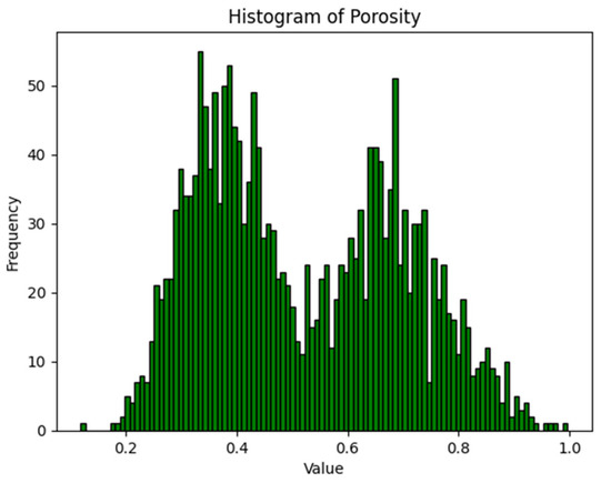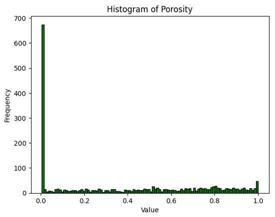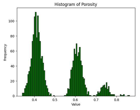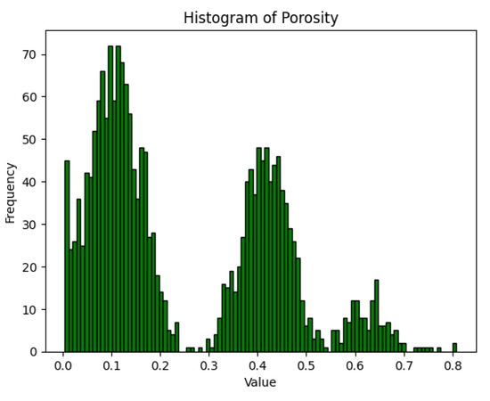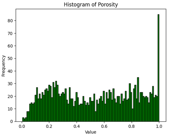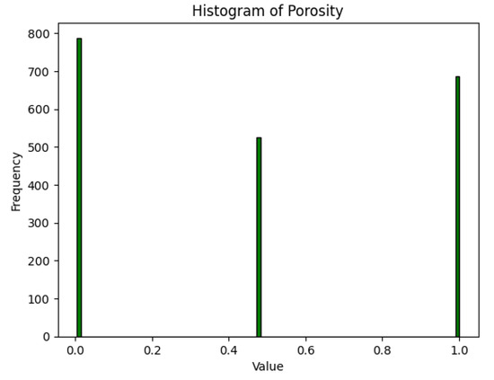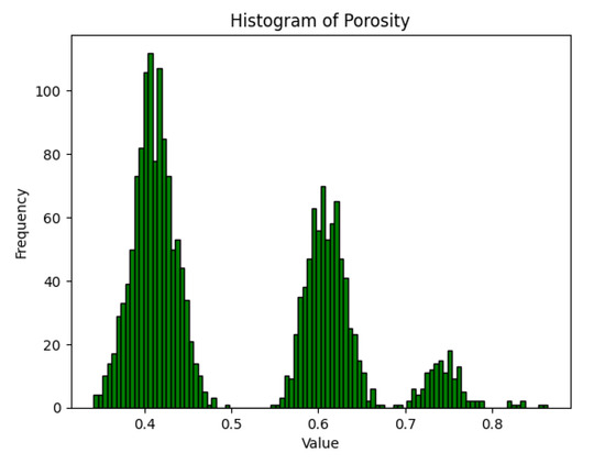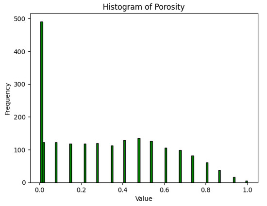 After using the algorithm in this paper, there are very few meshes with porosity close to zero, which is also in line with the actual situation, and there is no overflow of variables, and the program can run normally. The histogram of the calculation of the porosity of the algorithm in this paper is shown in Figure 18, Figure 19 and Figure 20.