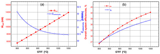 The impact of the gas turbine inlet temperature (T4) changes on the system’s work output, energy cost rate, and overall efficiencies.