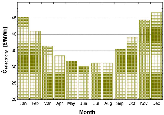 Figure 10 shows how this CCPP’s electricity cost changes throughout the year. Interestingly, it is cheaper in the summer compared to the winter. This is because summer sunshine provides most of the power, and sunshine is free! The data present that the energy cost rate is as low as 30.36 USD/MWh in June but increases to 46.76 USD/MWh in December.