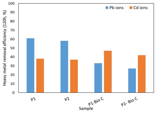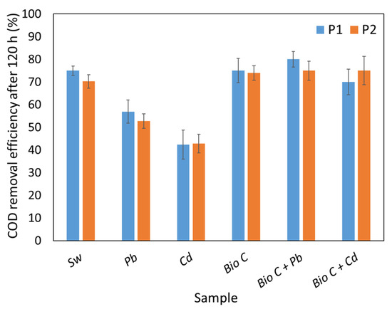 Volumes of 450 mL of uncontaminated heavy metal (Pb2+ and Cd2+) and contaminated synthetic wastewater were inoculated with 1% of R. mucilaginosa CMGB-G1, mucilaginosa CMGB 188, and R. with the initial concentration of 2 McFarland, respectively. The samples Bio C, Bio C + Pb and Bio C + Cd were obtained by adding 5% (v/v) crude biosurfactant in the inoculated synthetic wastewater. All the samples were incubated at 28 ± 2 °C for 120 h and the efficiency of nutrients and heavy metal removal was determined at the beginning and at the end of the experiment.