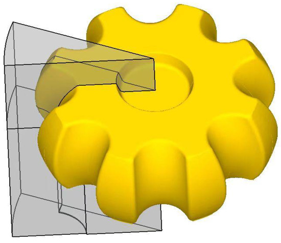 The forming of the inner core wheel is more complicated, so in this study, the 3D model of the mould was established by CATIA and saved as an .STL file, and the geometry file was imported into the pre-processing module of DEFORM-3D software. The established geometrical model for finite element analysis is shown in Figure 9.