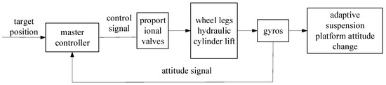 An expedited controller is utilized to evaluate the present body attitude using the gyroscope and then modify the hydraulic cylinder through proportional valve control to regulate the height of the wheel legs. The control flow diagram is depicted in Figure 5.