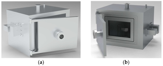 where a, b, and l are the rectangular cavity’s length, width, and height, respectively, m, n, and p are the standing wave numbers in corresponding directions and is the speed of light in a vacuum. f1 = 2400 MHz and f2 = 2500 MHz were used for the ISM (Industry, Science, and Medicine) frequency regulation.