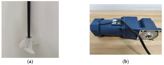 The physical picture of the stirring device. (a) The stirring paddle. (b) The rotary motor (Welldone Transmission 61K120R9U).