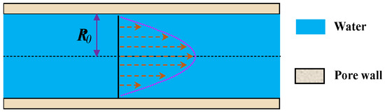 The flow of water at the microscopic pore scale is assumed to be laminar (see Figure 1), and the velocity distribution of the fluid along the pipe diameter adheres to the fluid continuity principle [18].