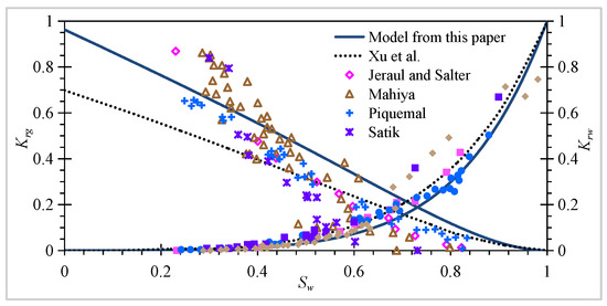 - Li, Y.; Li, X.; Teng, S.; Xu, D. Improved Models to Predict Gas–Water Relative Permeability in Fractures and Porous Media. J. Nat. Gas. Sci. Eng. 2014, 19, 190–201. [Google Scholar] [CrossRef]