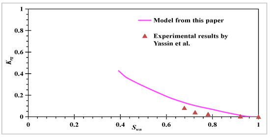 According to Equations (42) and (43), the relative permeability of the gas phase of the nanopore characterization unit can be obtained:
