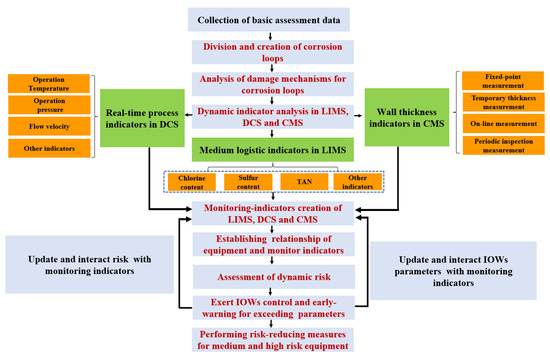 Step 1. Obtaining basic risk assessment data with the general requirements of API 580 and API 581 [16,17]. The potential damage mechanisms are identified according to API 571 [28]. Further, dividing the corrosion loops according to technological process analysis. Corrosion loops are important in the DRBI and IOW integrated method, which are closely related to identifying the damage mechanisms and establishing relationships between monitoring data and corresponding equipment.