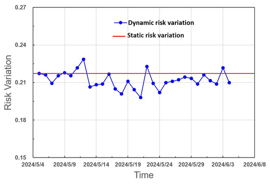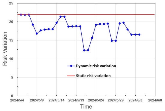 Figure 4 indicates comparison of the static and dynamic risk variation for the 250-P-106-2.5A2 pipeline. In traditional static RBI, the underlying assumption is that risk remains constant and acceptable in whole inspection period; the latest variations of the process conditions are not fed back into the risk calculation. Thus, risk value may be overestimated or underestimated due to the process parameters fluctuations, which may lead to unexpected failures or excessive inspection. However, process parameters fluctuations generally vary inevitably and exert significant effects on risk variation, which may account for the unexpected failure of equipment. Compared with the static risk profile, the real-time dynamic risk variation is displayed and any risk fluctuations can be captured accurately, which provides direct insights into the actual risk and decreases the uncertainty of risk assessment.