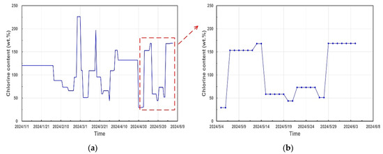 Variation in Cl− content with time for tube-side of heat exchanger E1-2/1-T of (a) and (b) local-enlarged diagram.