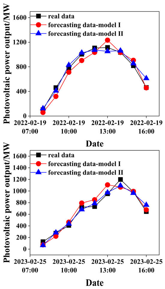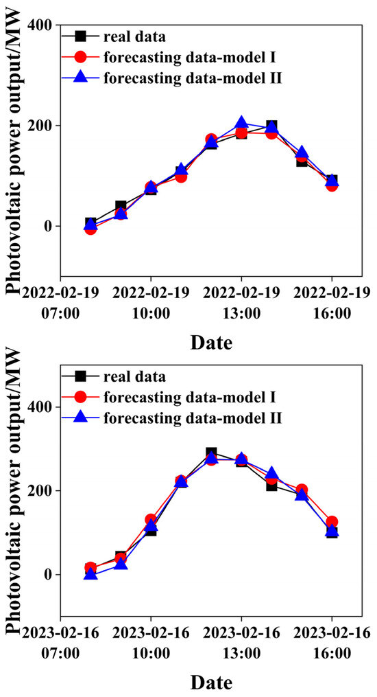 Furthermore, Model II exhibited lower prediction deviation compared to that of Model I, and its prediction curve more closely resembled the actual output curve. This suggests that the inclusion of rainfall and snowfall in Model II led to enhanced prediction performance. Obviously, it will be more complicated when considering the prediction of photovoltaic power generation under extreme weather of rain and snow.