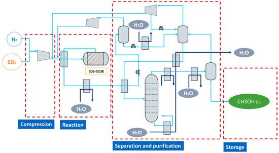 - Van-Dal, É.S.; Bouallou, C. Design and simulation of a methanol production plant from CO2 hydrogenation. J. Clean. Prod. 2013, 57, 38–45. [Google Scholar] [CrossRef]