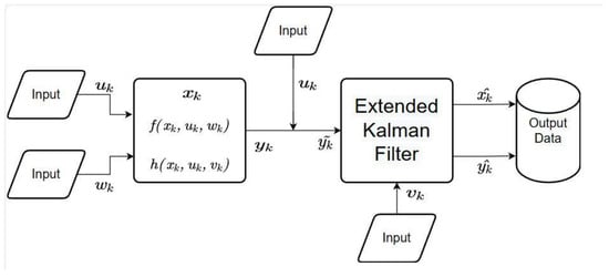 Scheme 1 represents the process of reproducing EKF in MATLAB. It strictly followed the following process []: (1) preparing the experimental equipment; (2) initializing the experimental data; (3) importing the existing data; and (4) using the extended Kalman algorithm to process the data for accurate estimation.