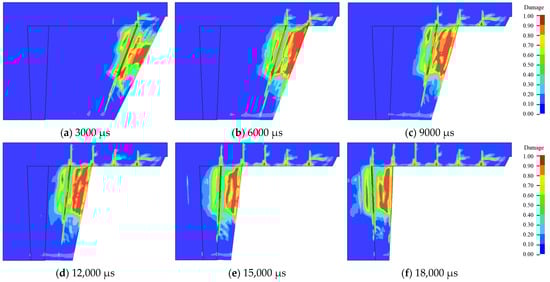 The parameters for the dolomitic limestone’s RHT model are mainly derived from laboratory experiments and calibrated using the methodology from reference [28], as shown in Table 3. During post-processing, the damage calculation results can be viewed using history variable #4.