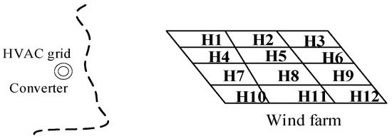 In the context of planning extensive land-based wind power development in the southeastern coastal provinces, this paper thoroughly delves into the economic analysis of diverse wind power transmission systems. Figure 1 illustrates the designated wind power planning and construction areas, segmented into 12 wind farms labeled H1 through H12, each boasting an installed capacity of approximately 300 MW. The total anticipated installed capacity for this locale stands at 3.6 GW. The wind farms are geographically distributed and numbered consecutively from H1 to H12. Given the generalizability of the offshore wind farm examined in this paper, the following constraints have been imposed: