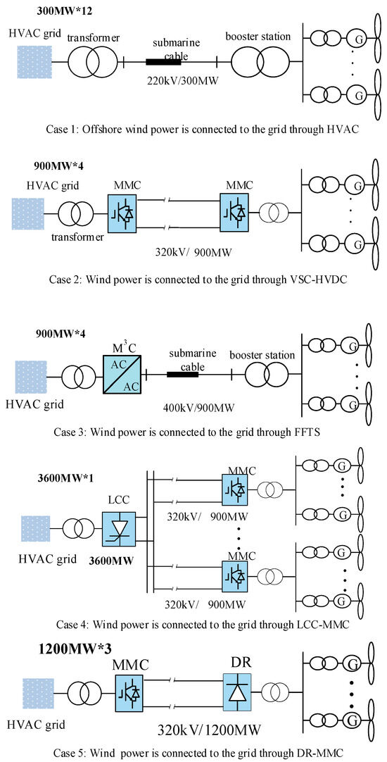 The transmission schemes for five kinds of land wind power grid-connected structures are shown in Figure 2.