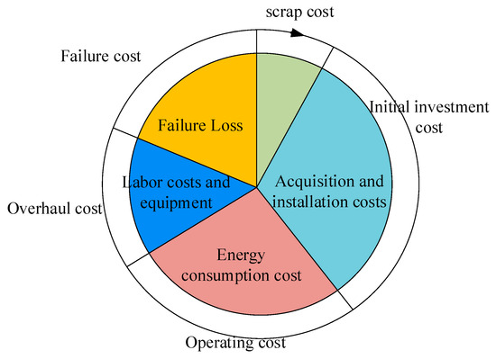 Here, C0 represents the initial investment cost; C1 represents the operating cost; CM represents the maintenance cost; CD represents the scrap cost.