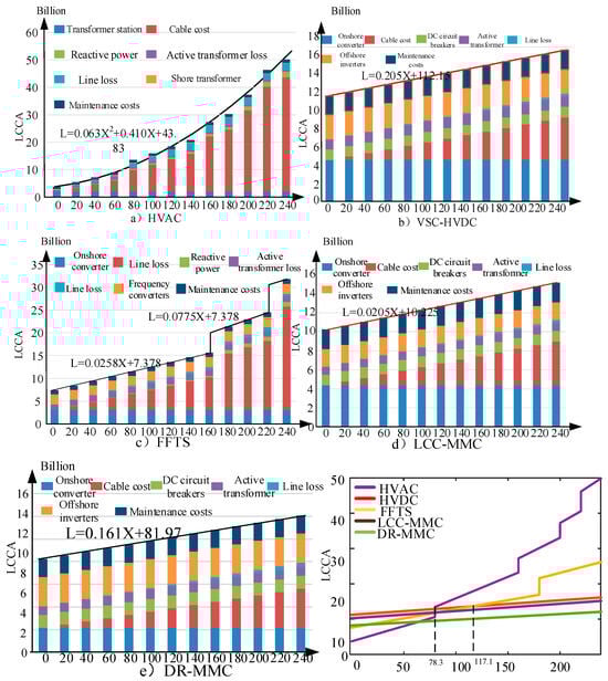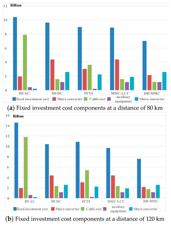 (1) Transmission Distance Constraint: In anticipation of China’s offshore wind power developments, where the average offshore distance exceeds 100 km and may reach a maximum of 200 km, this study prioritizes distances greater than 100 km, focusing on those anticipated in the next decade. The analysis range is between 50 and 250 km, mirroring realistic application scenarios.