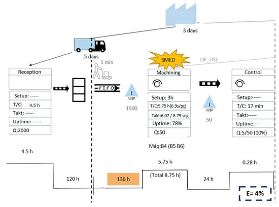 Silva et al. [20] point out that the VSM provides a detailed ‘door-to-door’ visualization of the production process, identifies waste, establishes a common language for processes, integrates Lean concepts, identifies material and information flows, and underpins decision-making and implementation plans.