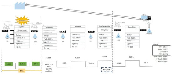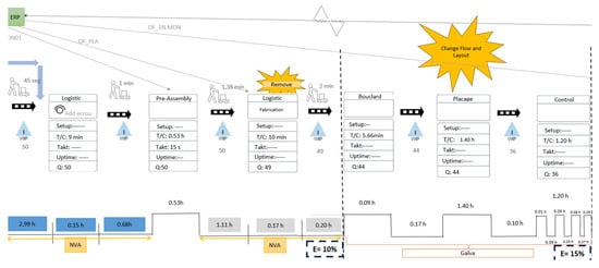 - The most significant improvement was the restructuring of the layout and flows, with the creation of component stock, which eliminated approximately 14 h of non-value-added (NVA) time.