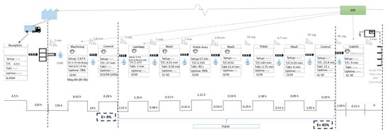 - Horsthofer-Rauch, J.; Schumann, M.; Milde, M.; Vernim, S.; Reinhart, G. Digitalized value stream mapping: Review and outlook. Procedia CIRP 2022, 112, 244–249. [Google Scholar] [CrossRef]