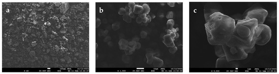 Gluten-free mixture with pumpkin cake—electron microscopic image (magnification ratio: (a) ×40; (b) ×1000; and (c) ×3000).