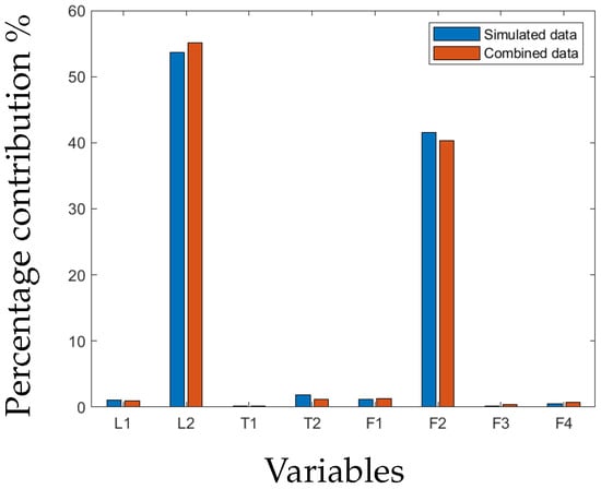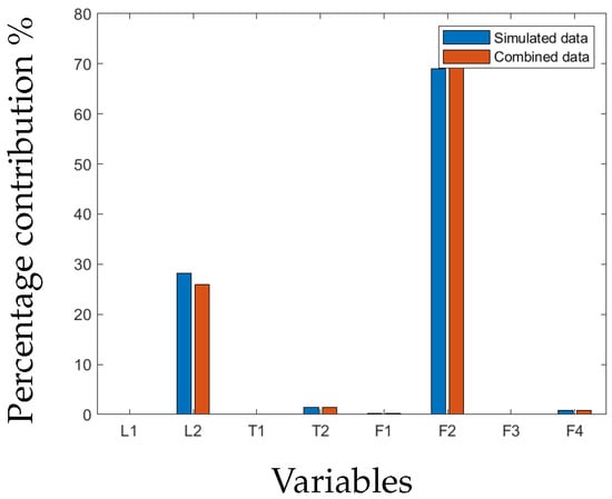 Contribution plots can be used to isolate the fault. Abnormal deviation points in the transient can be used to derive a contribution plot [24]. The highest statistical point, whether or SPE, is selected to identify abnormal deviations over time, enabling the calculation of each variable’s contribution. The following equation is used to calculate the contribution plot for the statistic: